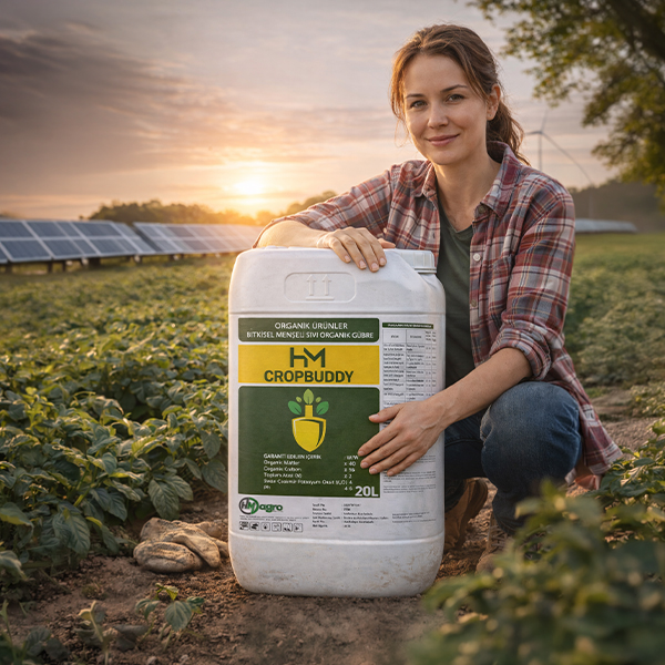 HM Agro CropBuddy, bitkisel menşeli içeriğe sahip sıvı organik gübredir. Bitkilerin gelişim dönemlerinde ihtiyaç duyduğu organik besinleri sağlayarak kök gelişimini, bitki direncini ve genel bitki sağlığını destekler. Toprak yapısını destekleyen formülü sayesinde besin alımını artırır, bitkilerin strese karşı dayanıklılığını güçlendirir ve daha sağlıklı gelişim ile verimli üretime katkı sağlar. Sebzelerden meyve ağaçlarına, endüstri bitkilerinden yeşil alanlara kadar geniş kullanım alanına sahiptir.